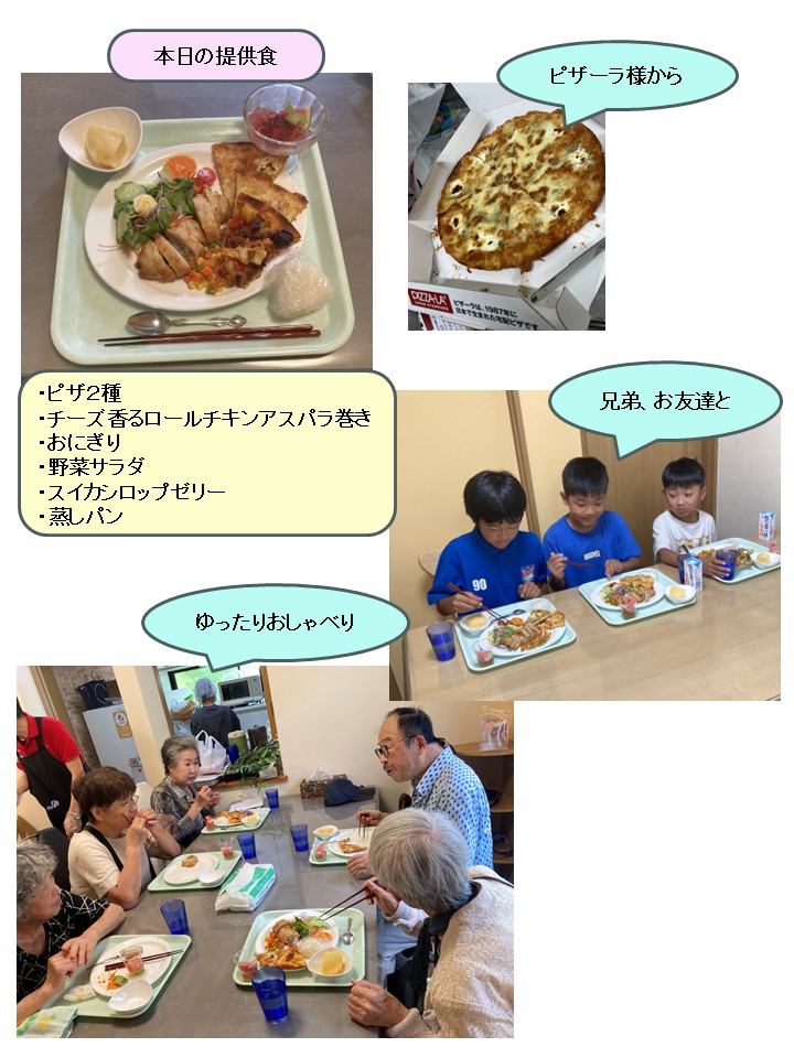 第56回こども食堂、終了しました。今回はピザーラ様からピザのご提供いただきました。