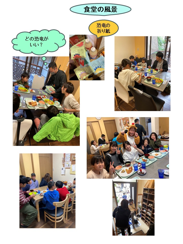 折り紙のサンタさんと恐竜をいただきました。こどもたちは興味津々。思い思いの色と形の折り紙を選んで持ち帰りました。